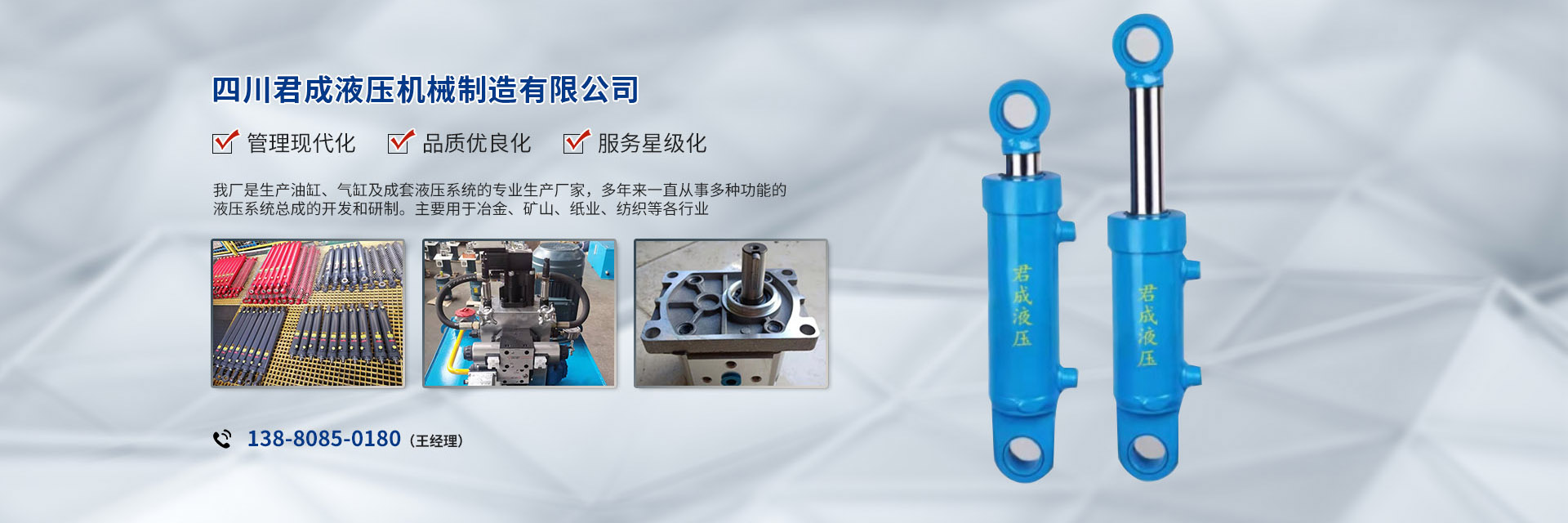 四川君成液壓機(jī)械制造有限公司成立于2012年,目前在職員工40余人,下設(shè)部門分別有總監(jiān)辦,人力部,財(cái)務(wù)部,采購部,技術(shù)部,生產(chǎn)加工部,業(yè)務(wù)部,綜合部,等部門!公司技術(shù)力量雄厚,設(shè)備齊全、****。